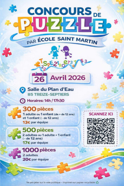 Venez relever le défi du “𝗖𝗼𝗻𝗰𝗼𝘂𝗿𝘀 𝗱𝗲 𝗽𝘂𝘇𝘇𝗹𝗲”, assembler les pièces et partager un bon moment dans la bonne humeur.